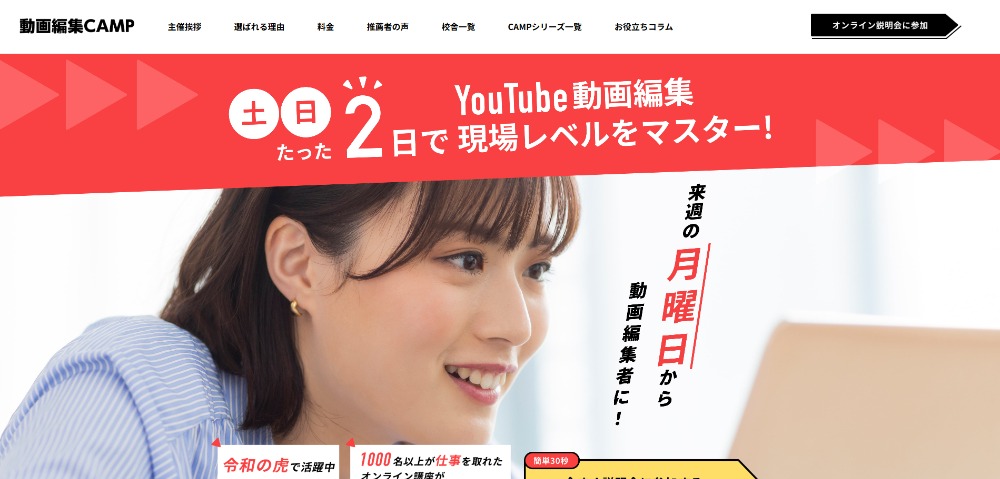 そんな悩みを抱えているあなたに注目されているのが、土日2日間で動画編集スキルを習得できる「動画編集CAMP」です。