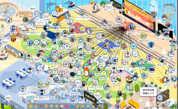まるでオフィスにいるように、アバターを介して自由に話しかけたり、グループで集まったりできます。