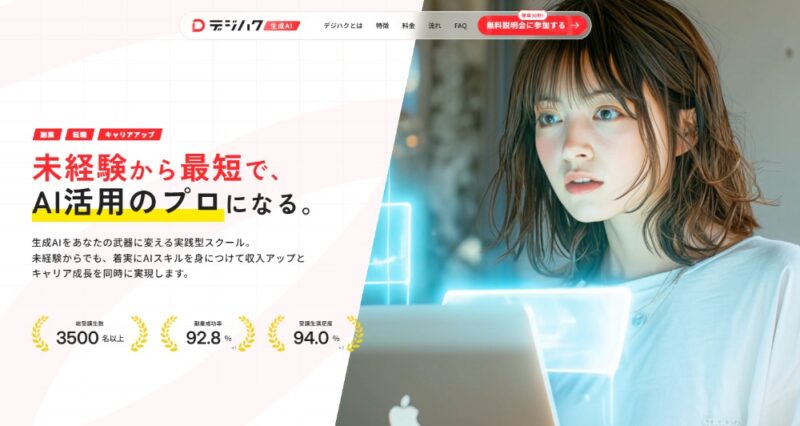 ということで、今回は、話題の生成AIをカリキュラムに取り入れた、『デジハク生成AIスクール』について、徹底解説いたします。