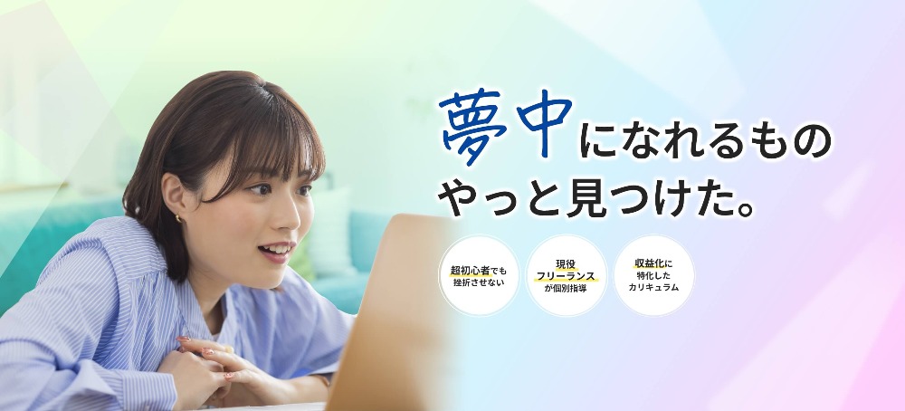 パソコンが苦手でも安心して始められるカリキュラム設計で、在宅ワーク・副業・フリーランスとしての独立を目指す人たちに選ばれています。